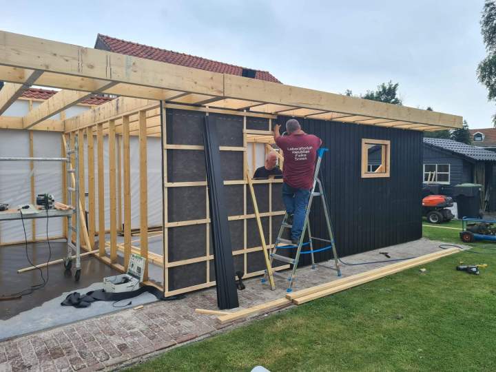 Ook hier in het mooie Bakhuizen werd weer een mooie degelijke overkapping met inpandige schuur geplaats. De volledige resultaten binnenkort op onze website!
